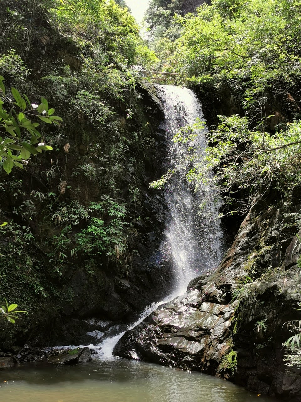 後面有一條瀑布。見有人走上去。旁邊有一條石級路向上。